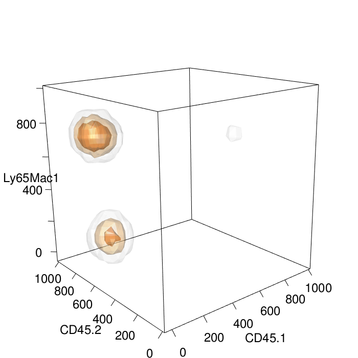 plot(fhat.hsct.scv, display="rgl", col.fun=seq.col3d, axes=FALSE, xlim=xlim, ylim=ylim, zlim=zlim, xlab="", ylab="", zlab="")